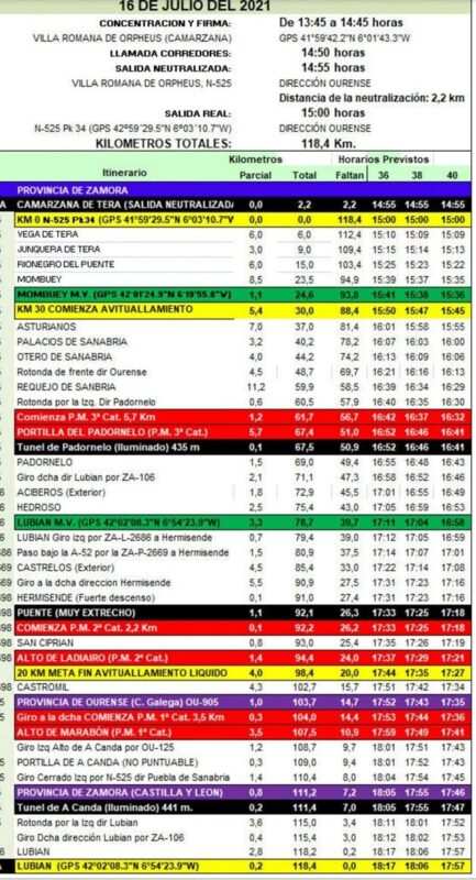En el kilómetro 24,6 se da un punto interesante en la jornada, la meta volante en Mombuey para comenzar el avituallamiento. Los corredores se enfrentan en el kilómetro 67,4 del recorrido a una ascensión de tercera categoría, la Portilla del Padornelo, a la hora y media de iniciarse la marcha y una hora más tarde, sobre las 17:25 horas comienzan a cruzar los altos de Ladiairo, de segunda categoría, para adentrarse en tierras gallegas, en la provincia de Ourense y cruzar el puerto de montaña de primera categoría, el Alto de Marabón, en el kilómetro 107,5. Tras sobrepasar la Portilla de A Canda, no es puntuable, enfilan dirección a Puebla de Sanabria por la N-525 adentrándose nuevamente en terreno zamorano por el Túnel de A Canda sobre las 17:55 horas, cogiendo la carretera ZA-106 a Lubián.