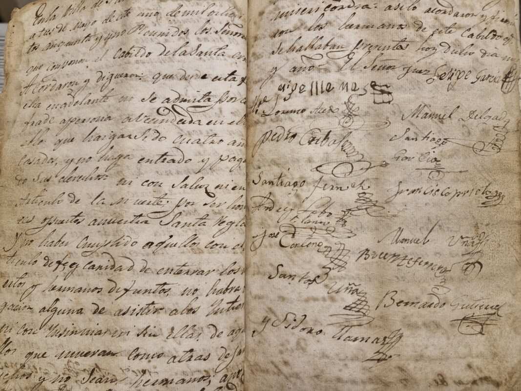 Es en el acta de 1927, del 3 de mayo, cuando por primera vez se reflejan todos los cofrades asistentes al cabildo. En total, asistieron a esa reunión a las puertas de la iglesia parroquial de San Juan Bautista, 173 cofrades siendo informados del balance de cuentas con un saldo de 305 pesetas. Todo ello, después de haber cobrado las multas, las entradas y abonar los gastos al sepulturero, al señor cura, y de gastos en un libro y un talonario.