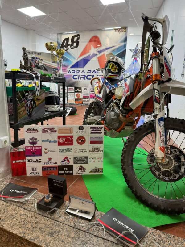 La muestra permite a los visitantes descubrir de cerca las motos con las que compite y entrena, además de una destacada colección de trofeos, medallas y equipamiento de competición. Este evento ha sido concebido como un gesto de agradecimiento a los patrocinadores que han respaldado al piloto en la temporada 2024.