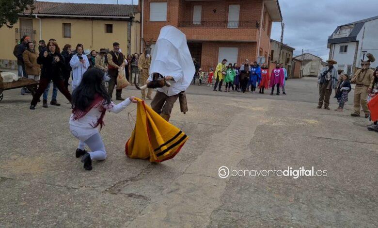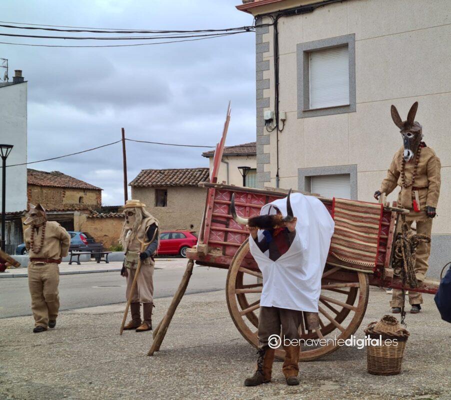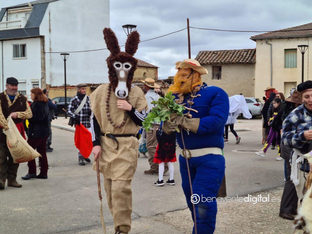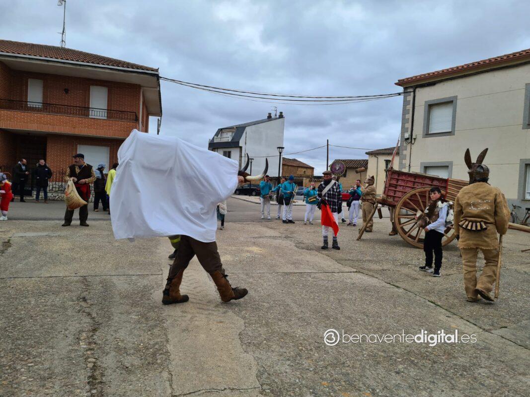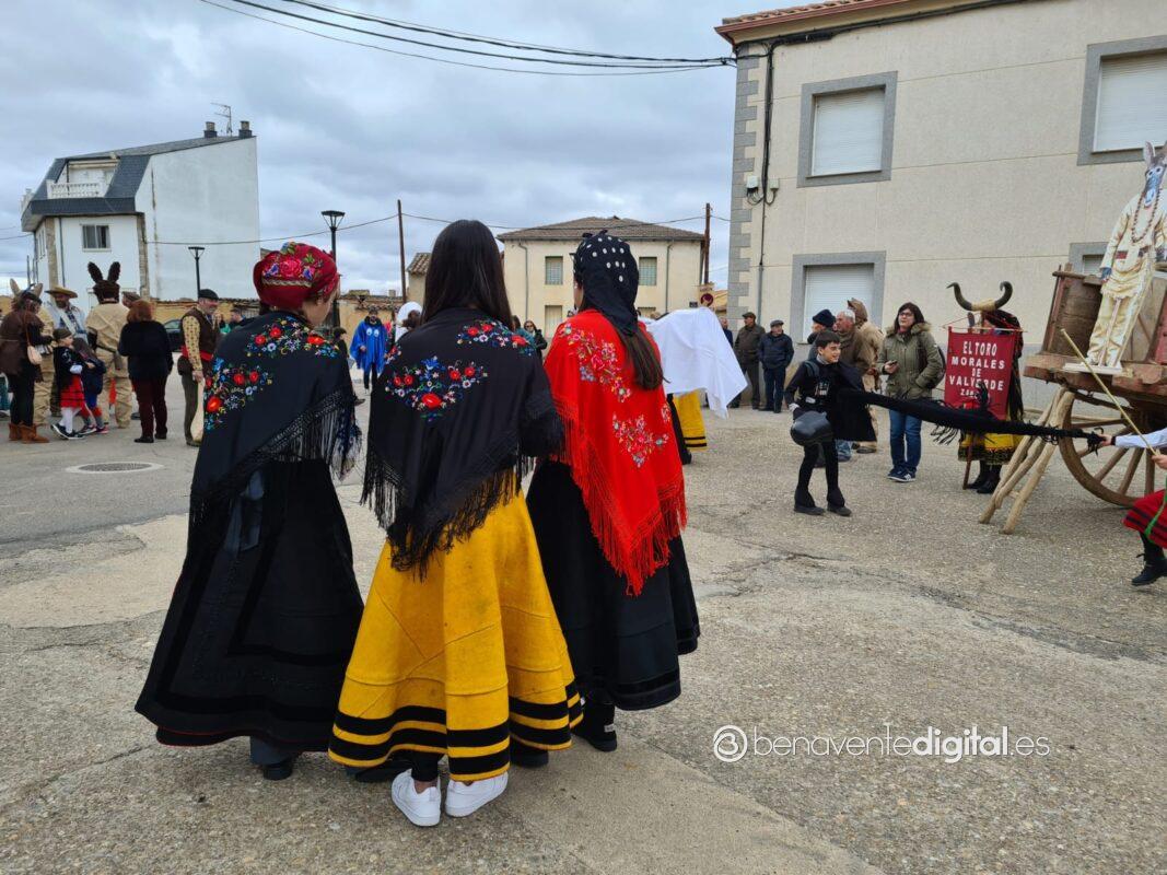 El grupo de mascaradas de Morales de Valverde recreaba en la tarde del sábado las simpáticas escenas del carnaval entre la complicidad del público. Las figuras de «los birrias», el «toro», los novios», «la señorita y el señorito» o «el gordo» recorrieron las calles de Morales de Valverde en un ambiente festivo. La activa asociación cultural y micológica «las pozas» con la colaboración del Ayuntamiento viene organizando la cita con salida desde el corral, esa era la tradición, donde los mozos se reunían para disfrazarse auyudándose unos a otros. A las puertas se agolpaban los chicos y chicas del pueblo al grito de. «¡Que salga el toooro, con cueeernos y tooodo!». Es cuando comienzan las carreras del torero y el toro tras el gentío. Incluso alguno osa hacer una capea hasta la suerte de matar. La charanga «los Chumachos» se encargó de animar el festejo en el convite de una generosa chocolatada.