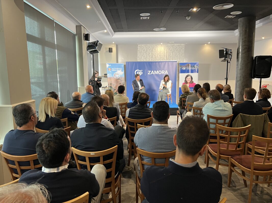 El consejero Fernández Carriedo era recibido a las puertas del Hotel Villa Benavente, donde se celebró el encuentro con los empresarios, por la candidata popular Beatriz Asensio y miembros de su candidatura. Al acto asistió también la delegada territorial de la Junta, Leticia García.