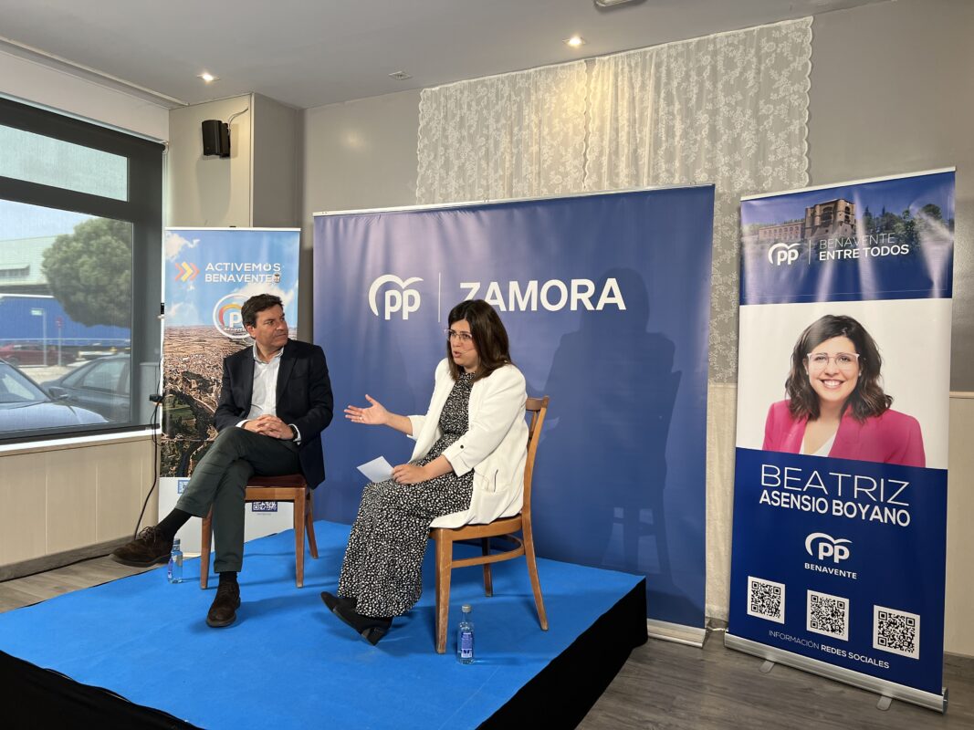 La candidata popular, Beatriz Asensio, anunció la creación de una concejalía de Promoción Industrial que dinamice el suelo empresarial como el Puerta del Noroeste, unas declaraciones tras el agradecimiento de la presencia del consejero y al apoyo a la Junta de Castilla y León en el Plan Territorial de Fomento con el que se permitirá la construcción del Puerta del Noroeste. No quiso pasar por alto Asensio en su intervención el «lamentable» estado en que se encuentra el polígono industrial calificando de «desidia» por parte del equipo de gobierno la situación del pavimento de sus viales, recordando que gracias a las subvenciones de la Junta se intervendrá en la mejora de la pavimentación, así como en la renovación del abastecimiento y del saneamiento por importe de 1,8 millones de euros, de los que la Junta aporta 630.000 euros y a través de Fondos de Cooperación Local se aportan otros 322.441 euros y el resto lo aporta el Ayuntamiento.