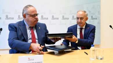 El consejero de Sanidad y presidente de la Fundación Instituto de Estudios de Ciencias de la Salud de Castilla y León, Alejandro Vázquez Ramos, y el rector de la Universidad…