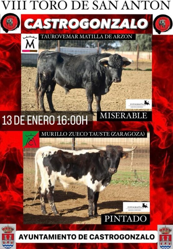 La Asociación Castreño Taurina «Acasta» ya tiene preparada su cita más importante del año con la celebración del VIII Toro de San Antón el 13 de enero de 2024.