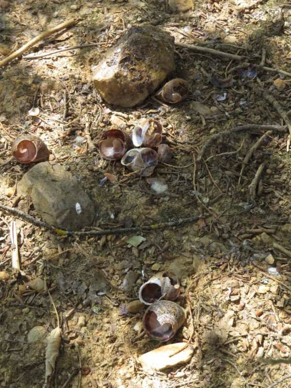 El zorzal común (Turdus philomelos), también conocido como tordo o malvís, según recoge el blog de José Alfredo Hernández en ZamoraBiodiversa siente gran apetencia por los caracoles, los cuales llegan a constituir con frecuencia una parte importante de su dieta. Para acceder con mayor facilidad a su carne escacha las conchas de los gasterópodos golpeándolas contra una piedra que utiliza a modo de yunque.