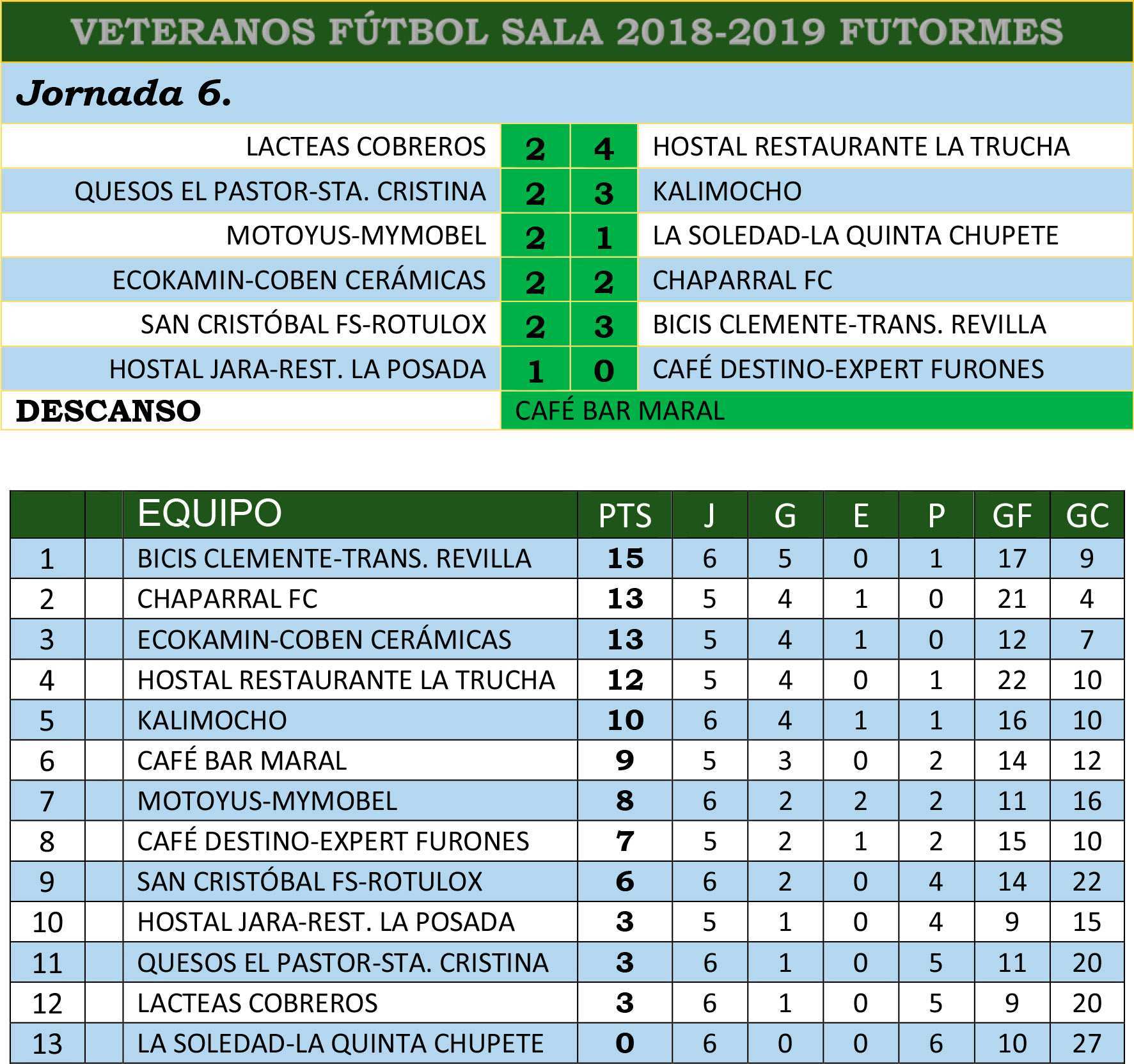 Sexta jornada en la Liga de Veteranos Futormes de fútbol sala y un partido que destacaba en la zona alta de la tabla que finalizaba en empate. Chaparral y Chimeneas Ecokamín-Coben Cerámicas sellaron su partido con un reparto de puntos en un choque a la altura de lo esperado y con un actual campeón que llegó a estar con un dos cero por delante. El subcampeón del año pasado conseguía empatar el partido jugando de cinco y a punto estuvo de llevarse los tres puntos cuando entre el palo y el portero del Chaparral evitaron el tercero de los tantos a apenas unos segundos para acaba el choque.