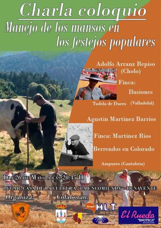 La charla coloquio cuyo título es «Manejo de los mansos en festejos populares » contará con la presencia de Adolfo Arranz Repiso de la Finca «Ilusiones» de la localidad de Tudela de Duero (Valladolid) y de Agustín Martínez Barrios de la Finca » Martínez Ríos » de la localidad de Ampuero (Cantabria).