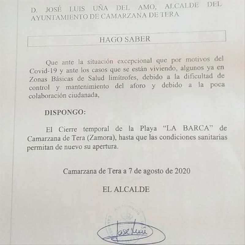 El alcalde del Ayuntamiento de Camarzana de Tera, José Luis Uña del Amo, daba a conocer en la tarde de ayer viernes, la decisión tomada desde el consistorio ante los casos “que se están viviendo de Covid-19″, algunos ya en zonas básicas limítrofes.