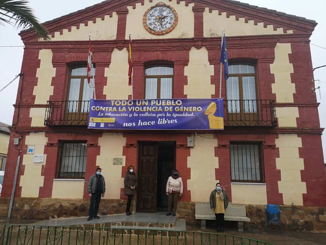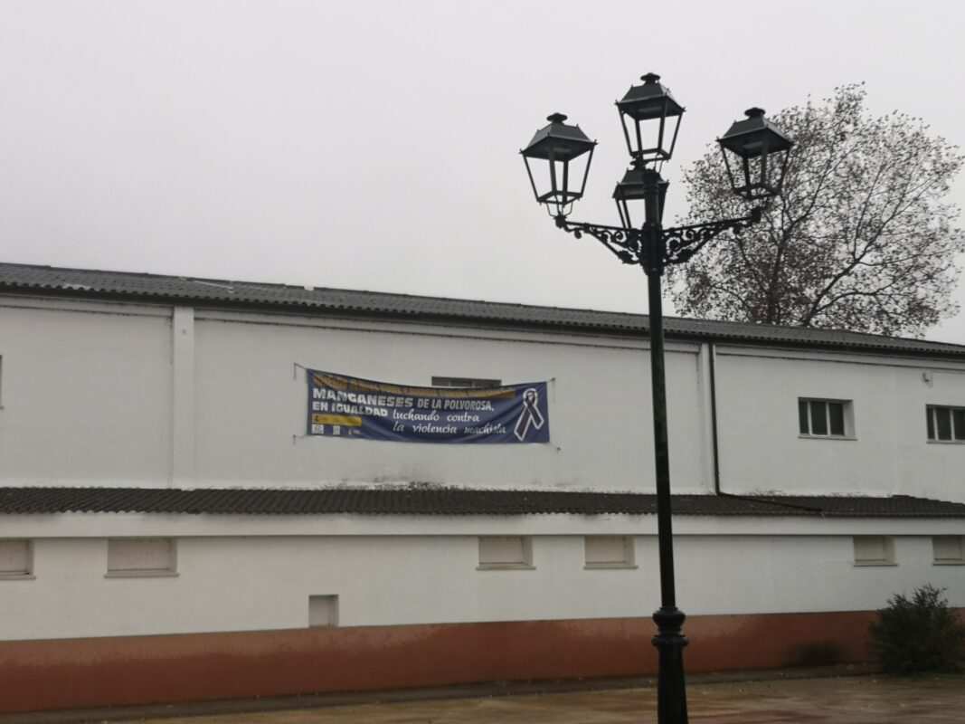 En otra de las localidades de la comarca, en Manganeses de la Polvorosa, una pancarta instalada en la fachada del frontón, expresa también la lucha contra la violencia de género.