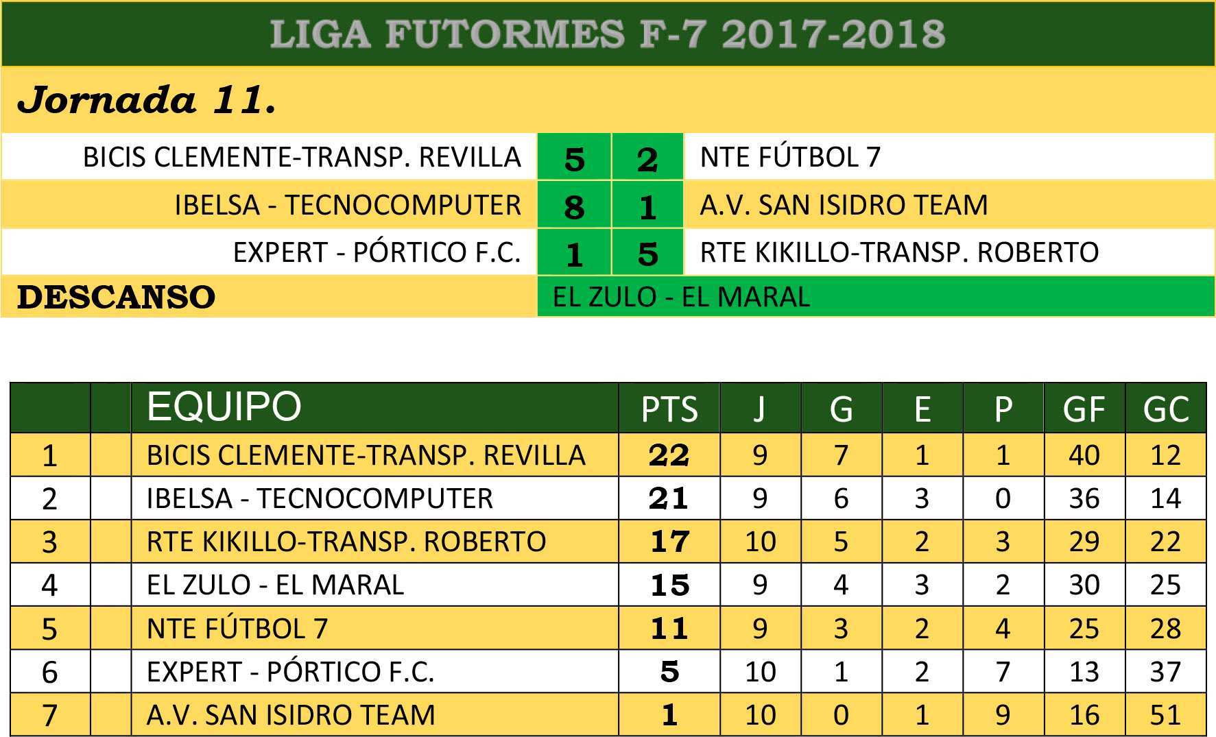 En Fútbol 7 Bicis Clemente-Transportes Revilla sigue sumando puntos pero no consigue abrir brecha con el segundo clasificado Ilbesa-Tecnocomputer a los que solamente les separa un punto.