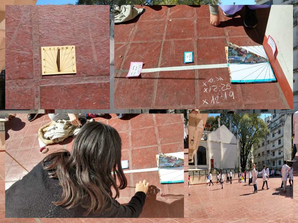 Realizando las medidas y cálculos necesarios. Los datos de cada colegio por si mismos son insuficientes para determinar el radio de la Tierra, si no se cruzan con las tomadas por alumnos de otros colegios situados al menos a 400 km dirección N-S.