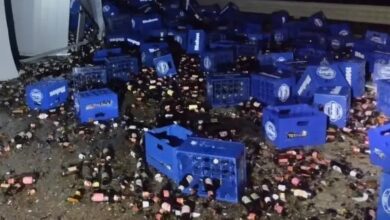 Un camión pierde su carga de cerveza en la carretera de Benavente a Manganeses y llena de cristales la calzada