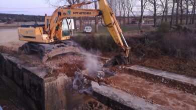 Las obras de derrribo del viejo puente sobre el arroyo del Regato o de la Vega en Uña de Quintana comenzaron este jueves por la empresa construcciones San Román Coco…