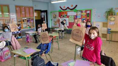 Los escolares del Sansueña reciben mascarillas y porciones de queso de la industria quesera de Santibáñez de Vidriales