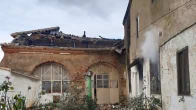 Gran despliegue de los Bomberos de Benavente por el incendio de varias viviendas en Prado