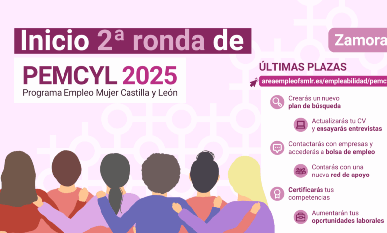 El Programa PEMCYL (Programa de Empleo y Formación de Mujeres en Castilla y León) ha arrancado una nueva edición en Zamora, donde todavía quedan plazas disponibles. Se trata de una iniciativa impulsada por la Consejería de Familia e Igualdad de Oportunidades de la Junta de Castilla y León, a través de la Dirección General de la Mujer, en colaboración con la Fundación Santa María la Real.