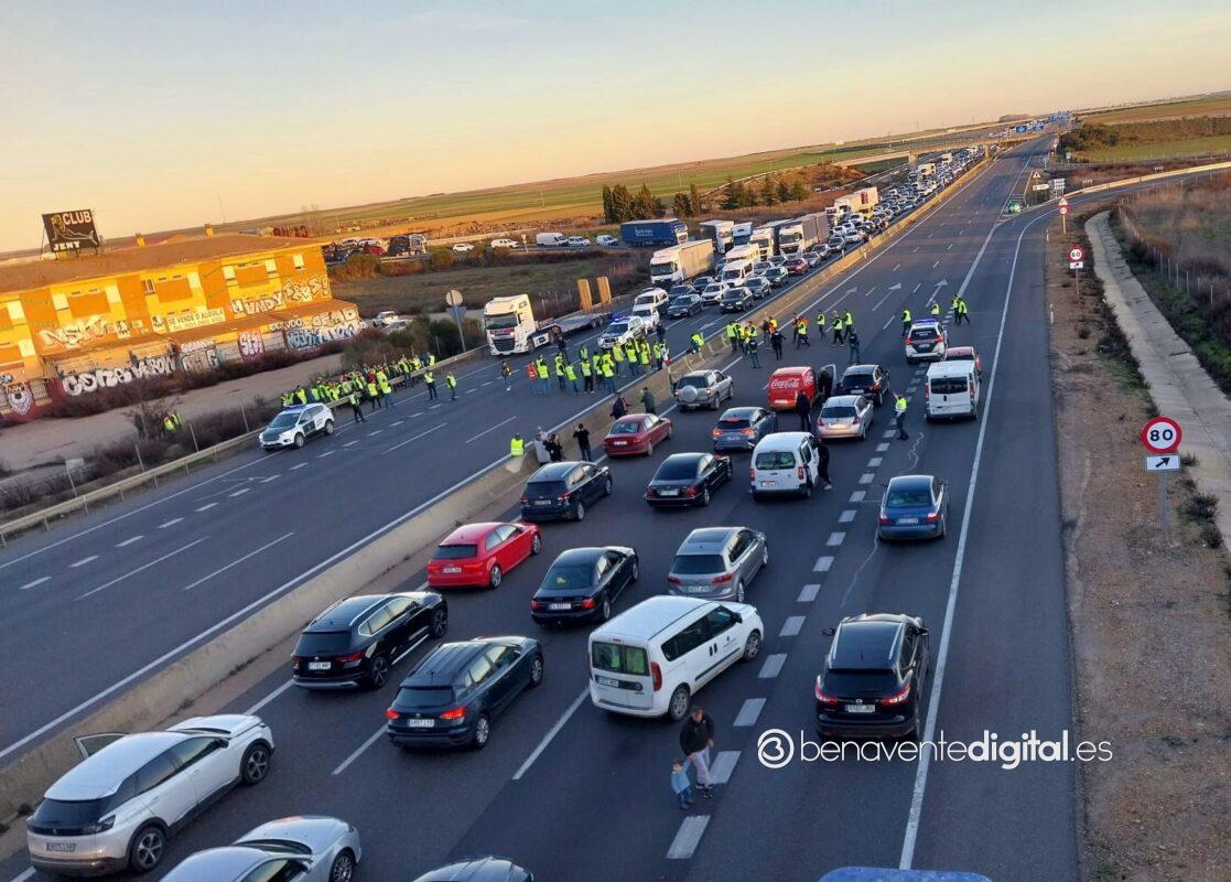 Cuando este lunes se cumplen seis jornadas de reivindicaciones, iniciadas el martes 30 de enero y solo suspendidas el pasado sábado 3 de febrero, los agricultores y ganaderos han cortado puntualmente y sin mayores incidencias que las retenciones de tráfico, las autovías A-52 en el término de Quiruelas de Vidriales y la A-6 en Paradores de Castrogonzalo. Las tractoradas han llegado incluso varios días a Benavente realizando un recorrido por la avenida de El Ferial, Vía del Canal y avenida Federico Silva con el fin de dar visibilidad a su rechazo a la entrada en vigor de la PAC con todo lo que conlleva y que les supone la asfixia para el sector, como ha venido informando puntualmente Benavente Digital.