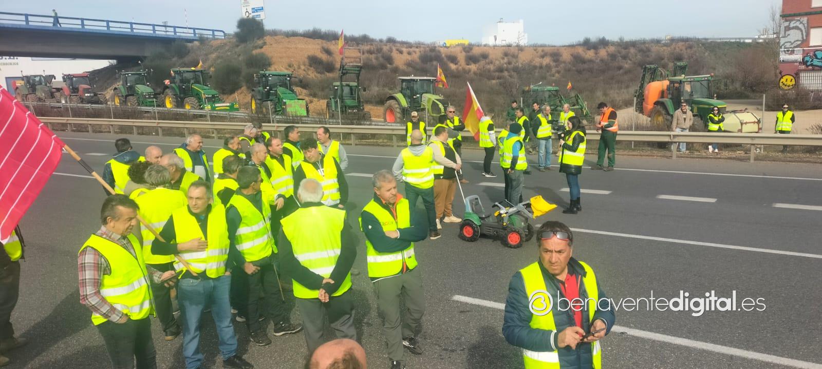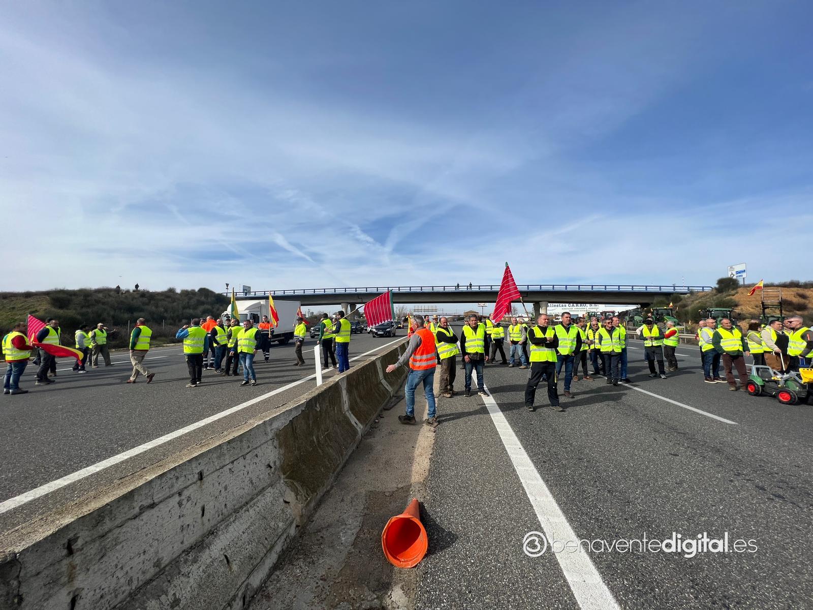 Cuando este lunes se cumplen seis jornadas de reivindicaciones, iniciadas el martes 30 de enero y solo suspendidas el pasado sábado 3 de febrero, los agricultores y ganaderos han cortado puntualmente y sin mayores incidencias que las retenciones de tráfico, las autovías A-52 en el término de Quiruelas de Vidriales y la A-6 en Paradores de Castrogonzalo. Las tractoradas han llegado incluso varios días a Benavente realizando un recorrido por la avenida de El Ferial, Vía del Canal y avenida Federico Silva con el fin de dar visibilidad a su rechazo a la entrada en vigor de la PAC con todo lo que conlleva y que les supone la asfixia para el sector, como ha venido informando puntualmente Benavente Digital.
