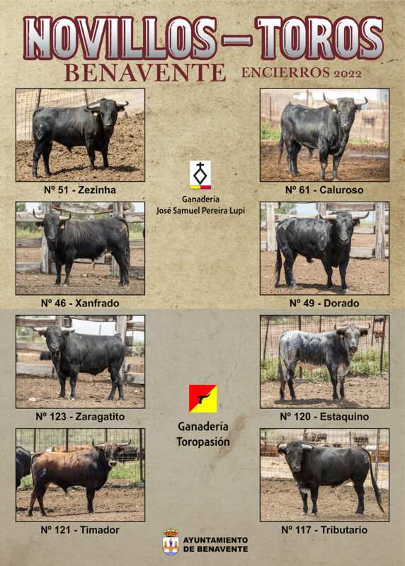 Las fiestas del Toro Enmaromado 2022 en Benavente acogerán la segunda eliminatoria de la Liga del Corte Puro el domingo 12 de junio donde participarán ocho astados de la ganadería de Toro Pasión