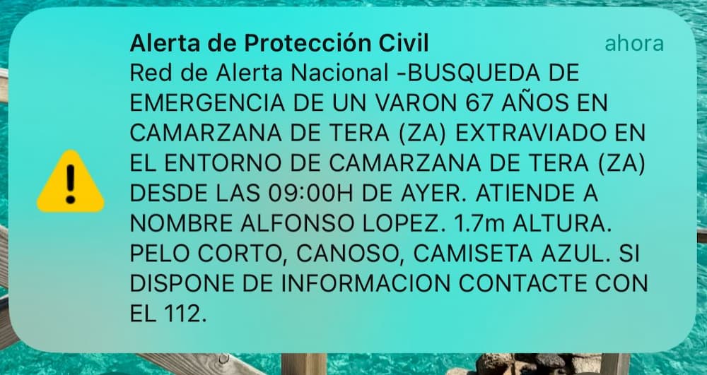 Se ha emitido una alerta de protección civil a través de los teléfonos móviles para buscar al desaparecido