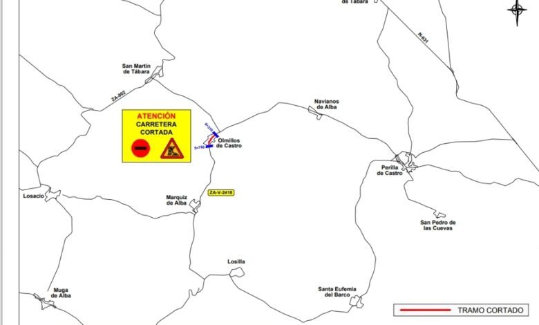 Corte total de la carretera en Olmillos de Castro por obras de mejora del firme
