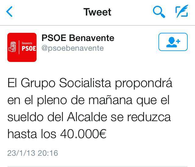 O que el PSOE dijese que no era necesaria la liberación de una Concejal prometiendo su supresión, para después hacer lo contrario. También anunció propuesta de sueldo del Alcalde de 40.000 €, pero aprobó 45.000 €.