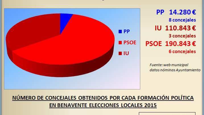 Igualmente desde el PP critican que el acuerdo alcanzado para aprobarlo se hiciese, no pensando en el bien de Benavente, sino de intereses partidistas de cada formación política. Y ello se demuestra claramente en el hecho de que IU, con tan solo tres concejales, tiene el mismo número de liberaciones que el PSOE, que tiene seis concejales. En ningún caso se hizo por razón de proporcionalidad basada en el apoyo conseguido en las urnas, concluyen en nota de prensa.