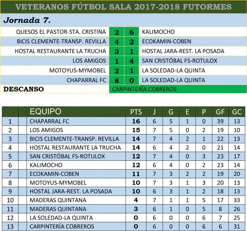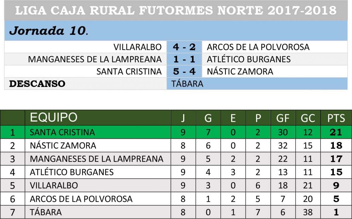Santa Cristina se ha colocado líder en la última jornada disputada dentro de la liga Caja Rural-Futormes tras vencer al Nastic Zamora al que desbanca de esa posición. En la Futormes de fútbol-7 Bicis Clemente-Transportes Revilla se aprovecha del descanso del Ilbesa-Tecnocomputer para abrir diferencias en la tabla después de vencer al San Isidro Team. En la Futormes Liga Veteranos Fútbol Sala la semana ha sido de descanso retomándose mañana lunes.