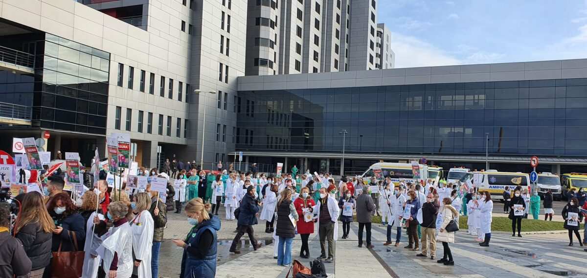 De nuevo, los sanitarios se han concentrado esta mañana, a las 11:00 horas, delante de los hospitales y centros de salud de toda la Comunidad, en silencio, para pedir la anulación o derogación del ‘decretazo’. “Una protesta que los trabajadores que se han concentrado lo hacen también en nombre del personal que está trabajando, atendiendo a los enfermos y usuarios”, afirma CSIF.