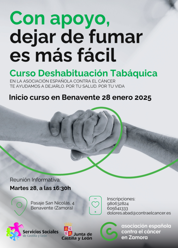 Con apoyo, dejar de fumar es más fácil. Bajo este lema, la Asociación Española Contra el Cáncer (AECC) en Benavente ha organizado un nuevo Curso de Deshabituación Tabáquica para quienes desean dejar de fumar y mejorar su salud.