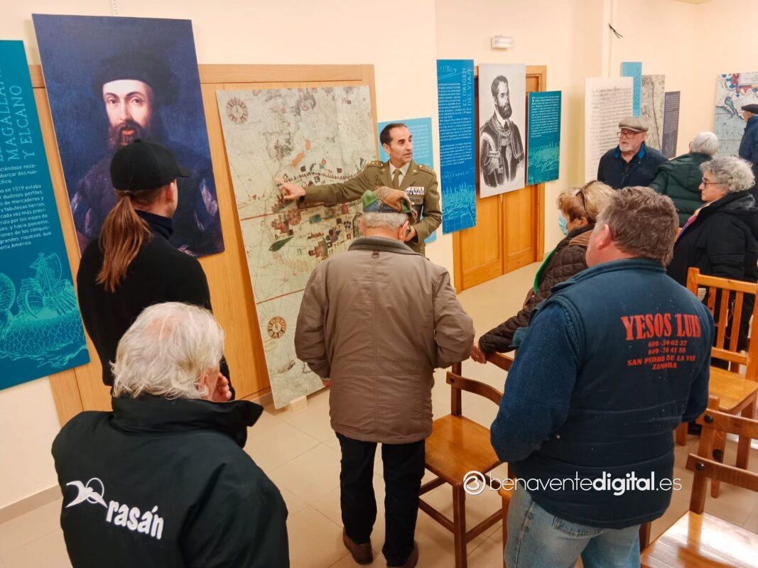 El coronel Vicente González Martín, en su calidad de máximo representante en la provincia del Ministerio de Defensa, abría la muestra expositiva en el salón del albergue municipal cuyas puertas permanecerán abiertas al público hasta el 25 de febrero desde las seis a las ocho de la tarde jueves, viernes, sábados y domingos como ya se adelantó en Benavente Digital. https://www.benaventedigital.es/el-viaje-a-la-especieria-de-magallanes-y-elcano-recala-en-santibanez-de-vidriales/
