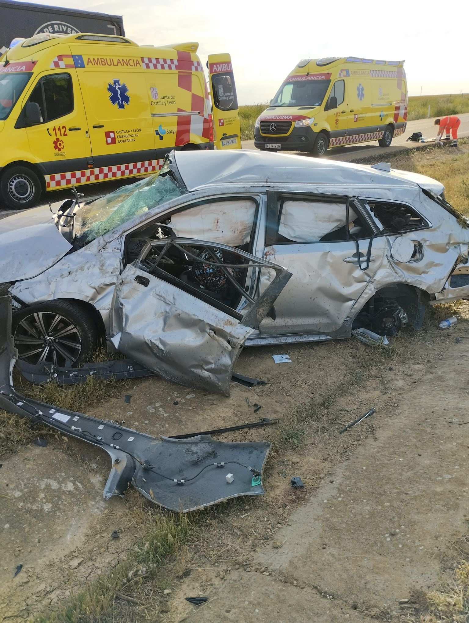 Un grave accidente de tráfico ha sacudido el kilómetro 248 de la A-6, en sentido Coruña, cuando un turismo se salió de la vía y dio varias vueltas de campana, dejando a cuatro personas heridas y atrapadas en su interior. La llamada de alerta llegó al centro de emergencias Castilla y León 1-1-2 a las 19:12 horas, informando sobre la gravedad de la situación, con dos de los ocupantes inconscientes: un hombre de 37 años y una menor de tres años.