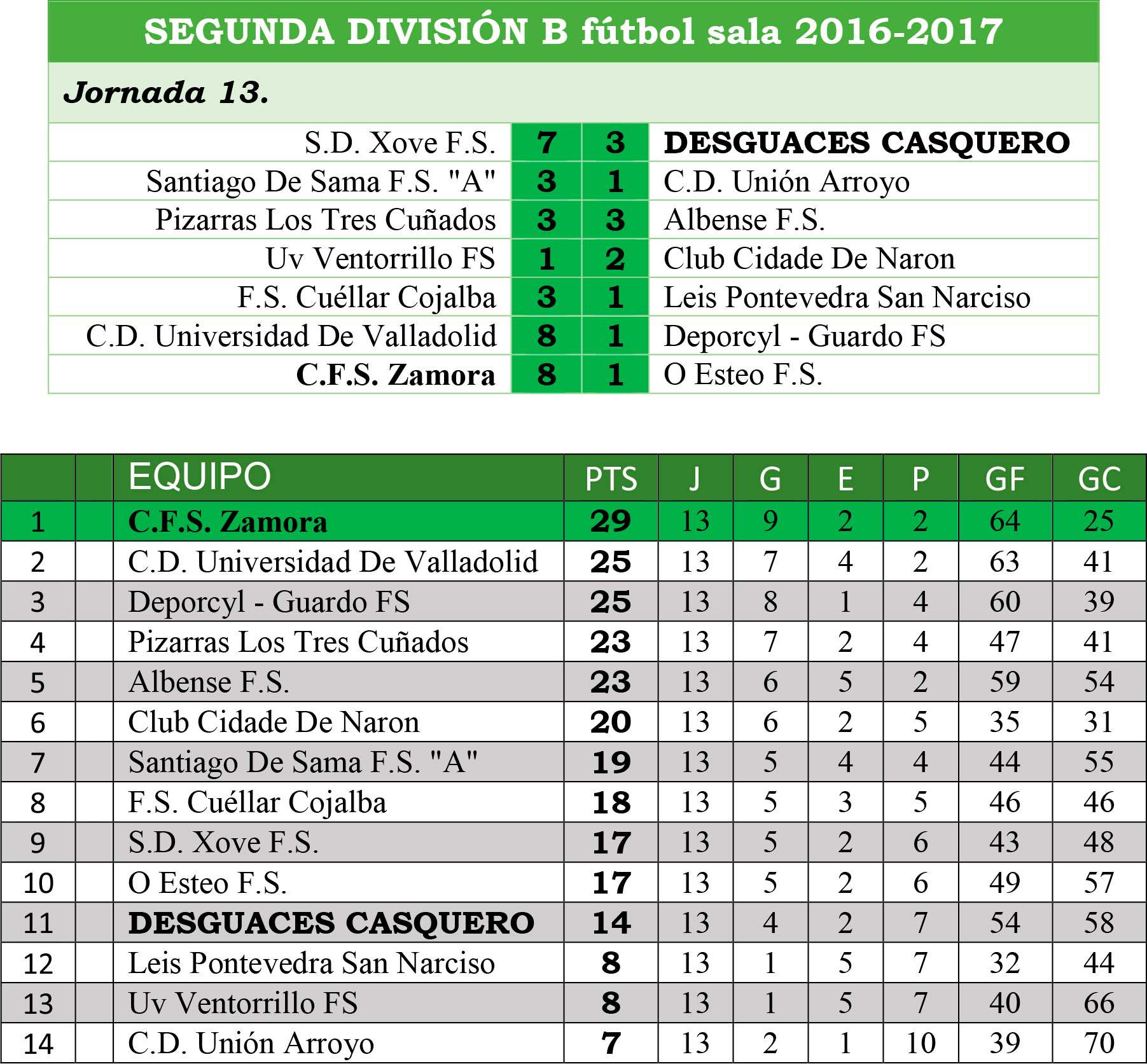 Una derrota que coloca a un Desguaces Casquero en una situación complicada a seis puntos del descenso, solamente descienden dos, pero también a seis de la sexta posición en la tabla. Bertolín, como ayer informábamos ha sido destituido como entrenador y ahora será Miguel Ángel Macías quien tome las riendas de un Desguaces Casquero que no estará en competición hasta después de Reyes.