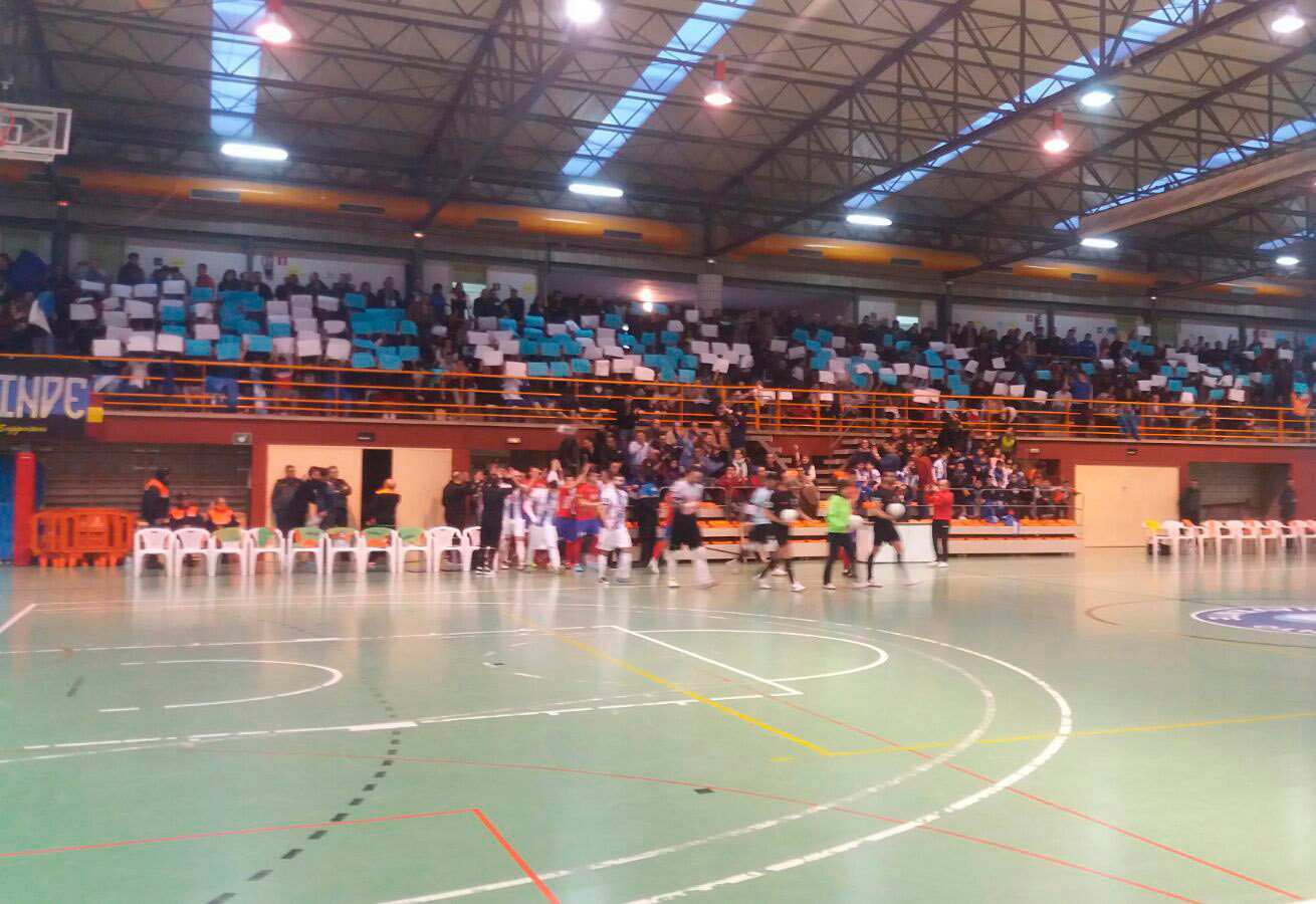 El marcador parecía insalvable, pero quedaba mucho partido por delante, y estando las gradas como estaban a reventar con el cartel de “no hay entradas” colgado había que dejar todo el coraje y hasta la última gota de sudor sobre una cancha que se convirtió en una pista de patinaje en los últimos minutos debido a la condensación por el ambiente en el graderío y que hizo que varios jugadores cayeran una y otra vez al menos en la banda contraria de la de vestuarios. Ito se marcaba un jugadón en el 28 sorteando a cuantos rivales salieron a su paso y como si llevara el balón pegado a sus pies para finalizar con un disparo que se iba al poste derecho de Javi Santos. También al palo ya en los minutos de la desesperada, el cuadro local jugaba hasta once con portero jugador, Diego enviaba uno de esos balones cortados al poste desde muy lejos y al menos otros dos intentos se iban fuera. Zorro haría el gol del honor en el 37 con un pase al hueco de Javi Cala que le colocaba la pelota entre líneas para que el cuatro local rematara a placer. Pudo llegar el segundo un minuto después pero entre Javi Santos, el poste y que Christian no estuvo fino la pelota no quiso entrar.