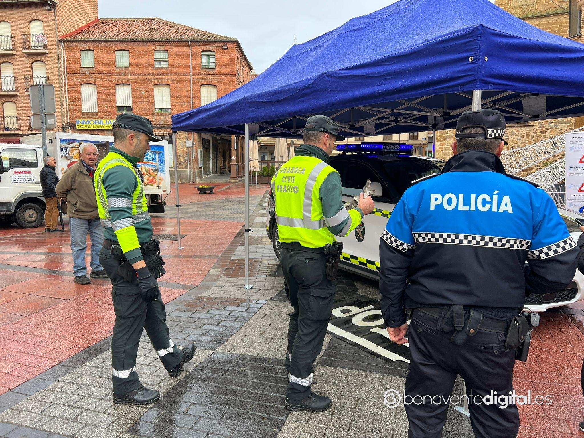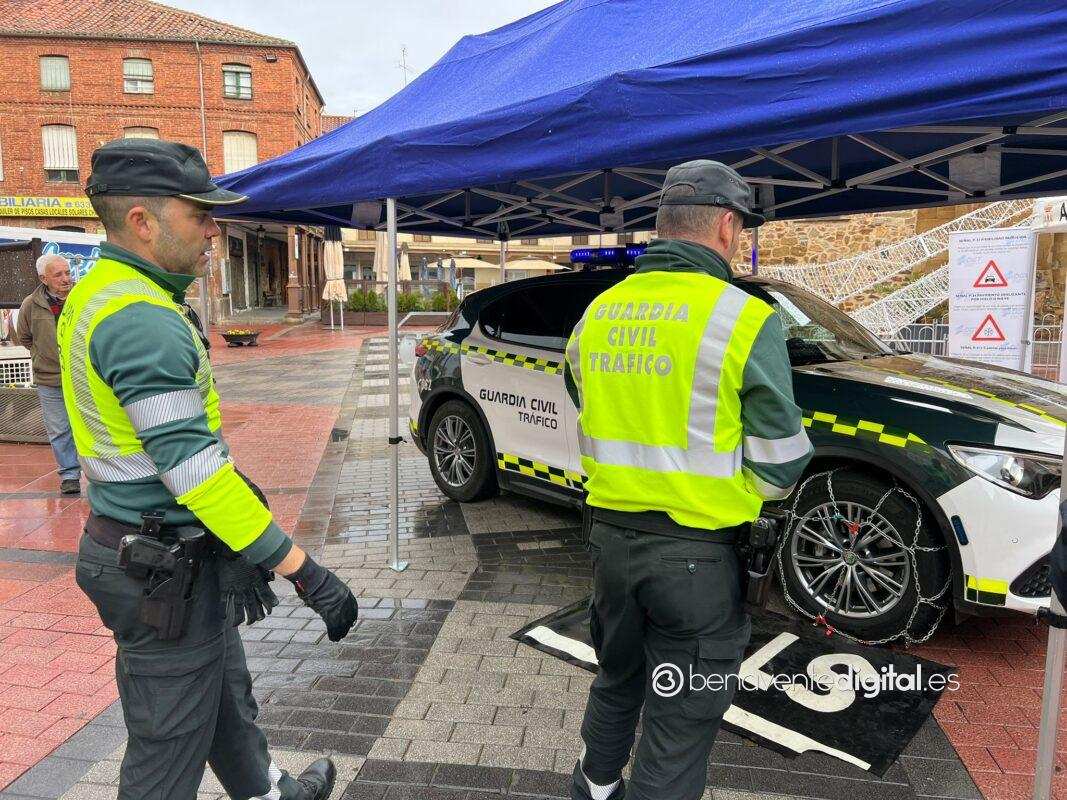 La plaza de la Madera acoge esta mañana el taller impartido por agentes de la Guardia Civil de Tráfico con la colaboración de la Policía Local de Benavente