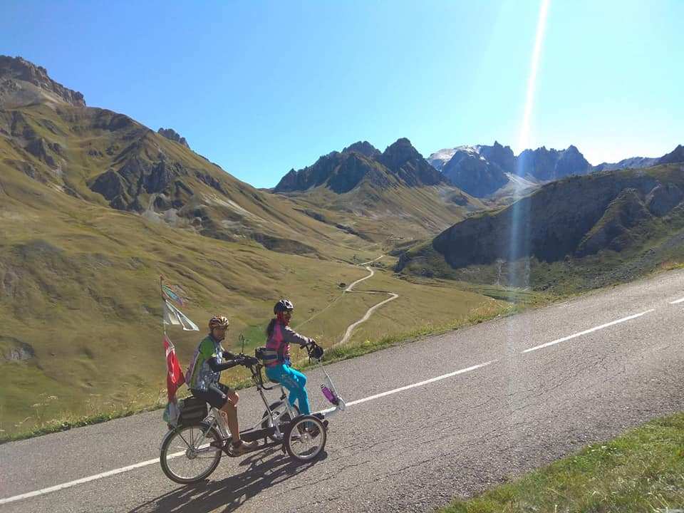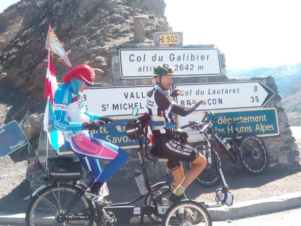 Subir el GALIBIER puede parecer tarea de titanes o de súper hombres ya que los 2.645 m de altitud imponen un enorme respeto, pero no es así en absoluto. Subir el GALIBIER es una colosal AVENTURA y un gigantesco PLACER y hacerlo con el grupo de DISCAMINO que lo ha subido esta mañana, no tiene nombre. Calis con Olalla, Miguel con Xabela, Lino con Chema, Silvia con Borja y yo con Iván, y José Luis como conductor y cocinero, ha sido un equipo de auténtico lujo y me iría con él al fin del mundo.