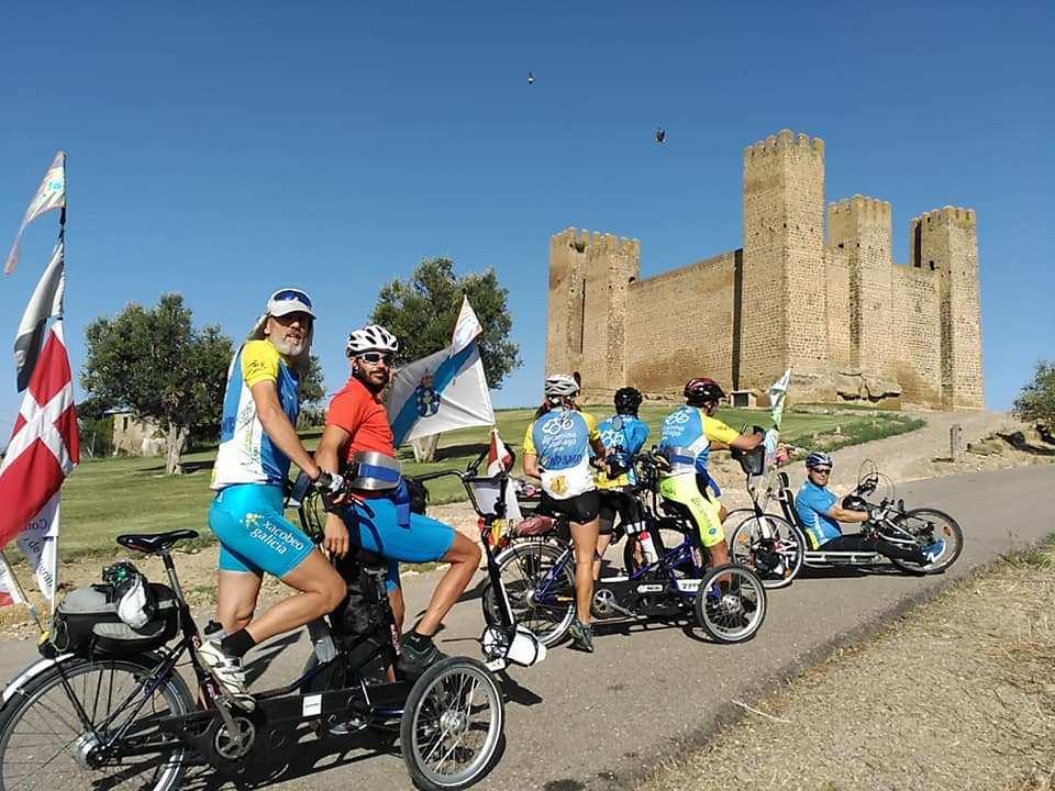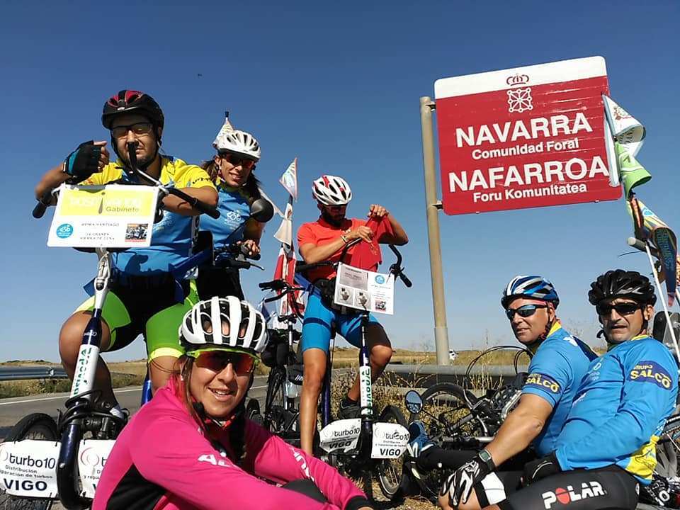 «Vaya jornada de rascarnos la barriga. 38 kilómetros a paso de mosca, visitando castillos, rodando en llano y bajada con el alma llena del cariño recibido en Amfe Ejea.. Obviamente mañana lo pagaremos caro ya que al no tener alojamiento en Carcastillo hemos venido al Albergue Doshaches de Figarol y eso nos deja 10 kilómetros extra para la etapa final del tercer tramo de este Roma-Santiago que tantas cosas buenas nos está deparando. Final de jornada mañana en Cizur Menor, en la residencia de Aspace Navarra, viejos amigos con los que los días 7, 8 y 9 de septiembre haremos nuestro primer camino juntos.