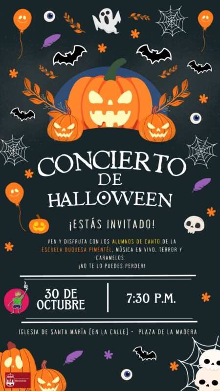 La escuela de Música «Duquesa Pimentel» ofrecerá un concierto a cargo de las alumnas y alumnos de canto moderno en el entorno de la iglesia de Santa María del Azogue, la Plaza de la Madera. La velada musical prevista para el miércoles 30 de octubre, a las 19:30 horas, viene a celebrar la Fiesta de Halloween.