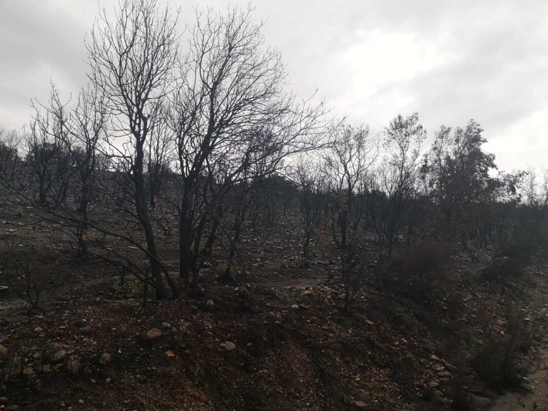 Salir del casco urbano de Calzadilla de Tera y adentrarse en la zona de monte es todo un panorama desolador, las llamas del gran incendio de mediados de junio arrasaron la superficie vegetal y enfilar el camino en dirección sureña, al pago de «Valdeferreras, un paraje natural a casi tres kilómetros del pueblo, donde se ubica una explotación de ganado vacuno, deja mudos los sentidos al contemplar todo calcinado. Este idílico valle se manifiesta ahora ennegrecido, salpicado de pequeñas motas de verdor gracias a la sabia naturaleza, a las más que aprovechadas gotas de lluvia de una pasada tormenta.