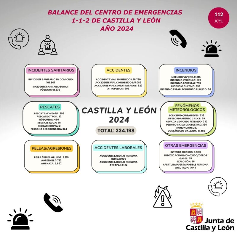El servicio, que atiende una media de 2.628 llamadas diarias, experimentó un aumento del 4,7 % en el número de emergencias gestionadas respecto al año anterior, con un total de 334.198 emergencias en toda Castilla y León. En Zamora, la gestión de emergencias incluyó desde accidentes de tráfico, situaciones sanitarias, hasta rescates de montaña, que también han experimentado un notable aumento con un 21 % más de incidencias en 2024.