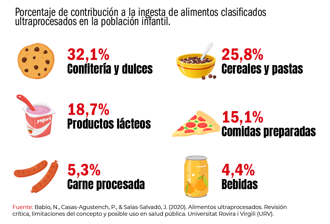 Los ultraprocesados, cargados de azúcares, grasas y sal, están desplazando los alimentos frescos y saludables de la dieta infantil. Según el estudio de la URV, los niños que consumen más ultraprocesados muestran: