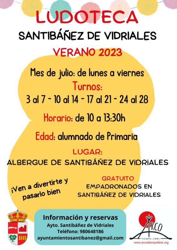 Los talleres infantiles y juveniles de cara al verano en la localidad de Santibáñez de Vidriales tienen ya marcadas las fechas en el calendario. Desde el lunes 3 de julio se extiende el abanico de actividades de la ludoteca promovida por el Ayuntamiento y organizada por «Arco Tiempo Libre».