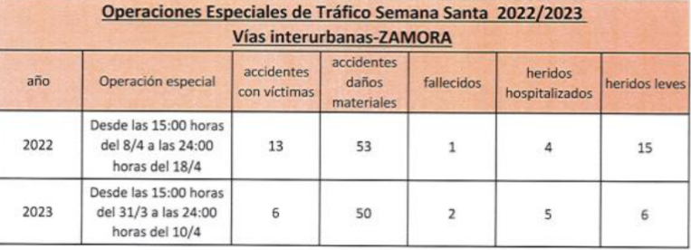 Comparando la operación especial Semana Santa 2023 con la de 2022 se contempla una importante disminución de los accidentes con víctimas en las vías interurbanas de Zamora. 13 en 2022 y 6 en 2023. Sin embargo la mortalidad ha aumentado de 1 a 2. “Ha sido una campaña especialmente complicada. No sólo porque se han duplicado los fallecidos sino porque la movilidad ha aumentado como nunca, tanto en la provincia como en España en general. Ha habido un nivel de movilidad elevadísimo. El más alto registrado hasta ahora” ha afirmado Ibáñez.