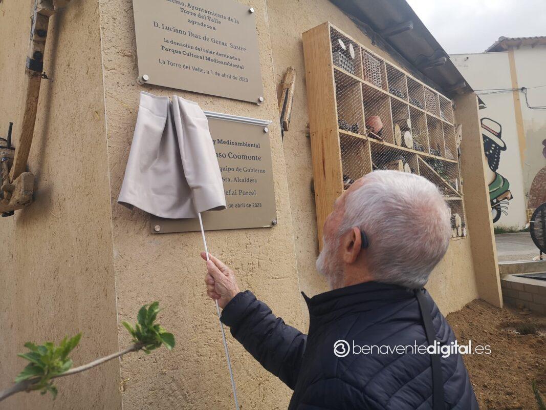 Desde el salón cultural la comitiva se trasladaba por las calles de La Torre del Valle, por la galería callejera del arte contra el olvido, hasta el parque de José Luis Coomonte donde el escultor descubría una placa con su nombre.