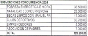 Recoge aquellas subvenciones o aportaciones, respecto de las que existe un compromiso cierto, es decir que hayan sido concedidas o recibidas durante los años anteriores o que exista un convenio en vigor, así como aquellas que previsiblemente van a recibirse por su carácter reiterativo en todas las anualidades como el canon anual de la empresa concesionaria del servicio del agua, así como el aumento de la aportación del Consorcio provincial extinción de incendios, incrementándose en 40.000 euros respecto del ejercicio 2023, como incremento permanente de recaudación .