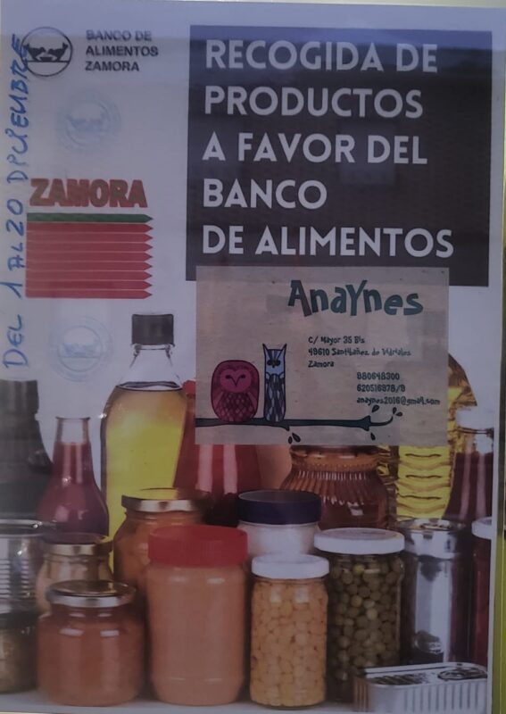 El establecimiento comercial del estanco «AnaYnes» ubicado en la calle Mayor de Santibáñez de Vidriales se convierte en centro receptor del Banco de Alimentos de Zamora. Desde el local se recogen alimentos, especialmente no perecederos, con el fin de paliar las necesidades alimenticias de colectivos y personas desfavorecidas.