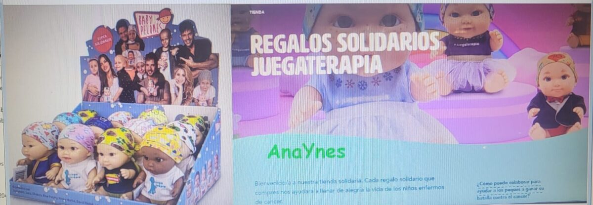 Del mismo modo, la tienda solidaria participa en la campaña Juegaterapia, de los juguetes baby Pelones. Cada regalo solidario que se adquiere en el local ayudará a llenar de alegría la vida de los niños enfermos de cáncer.