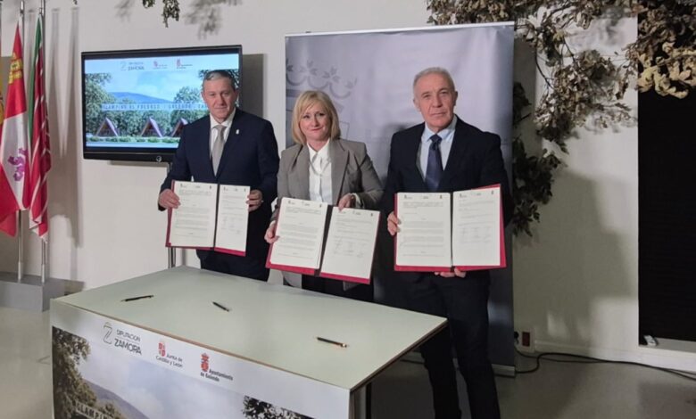 El acuerdo ha sido rubricado por la consejera de Industria, Comercio y Empleo, Leticia García, el presidente de la Diputación de Zamora, Javier Faúndez, y el alcalde de Galende, Miguel Ángel Martos, en la Casa del Parque del Lago de Sanabria.