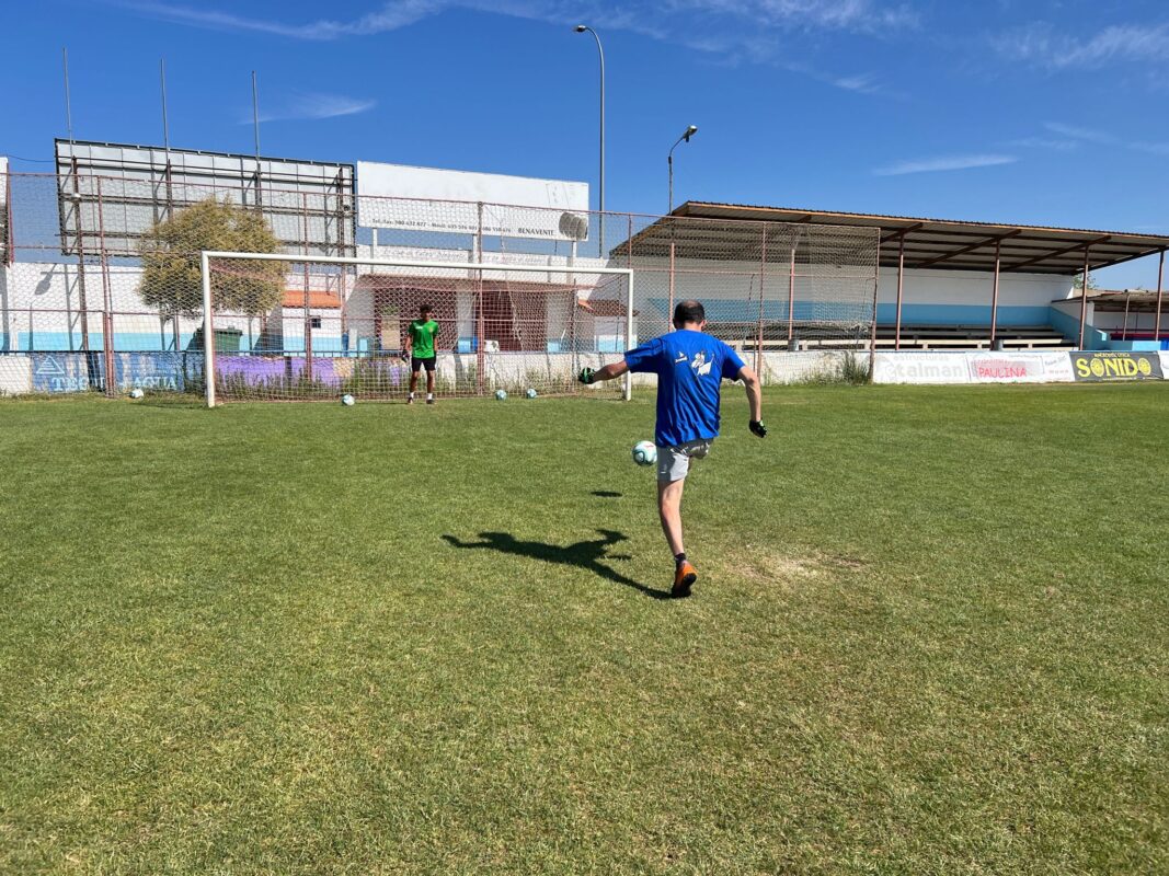 José Luis Posado se atrevió a pisar el césped y lanzar algún que otro tiro a puerta entre los agradecidos aplausos de los participantes de este segundo turno del campus de fútbol de verano del CD Benavente en su segunda edición.