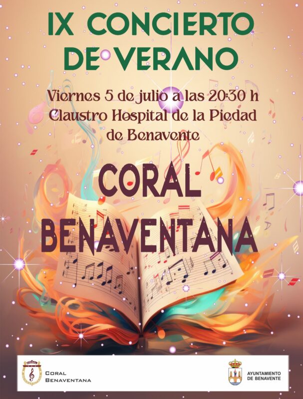 En el marco de los Conciertos de Verano, que este 2024 celebra su IX edición, la Coral Benaventana ofrece un concierto el próximo viernes 5 de julio a las 20:30 horas.